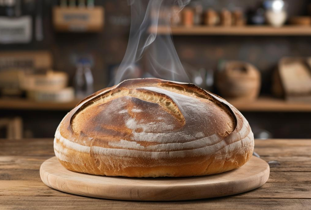 Этот рогалик — настоящее лакомство для гурманов. Внутри него скрывается нежное фруктовое ассорти, состоящее из свежих и ароматных кусочков фруктов. Тесто рогалика хрустящее снаружи и мягкое внутри, а начинка добавляет сладости и свежести. Пар, поднимающийся вверх, подчеркивает свежесть выпечки и вызывает желание попробовать этот десерт. Рогалик с фруктовым ассорти — идеальный выбор для тех, кто любит сочетать сладкое и полезное.
