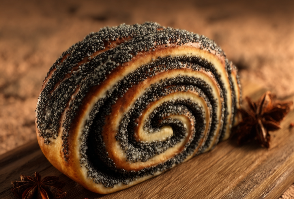 Знакомьтесь с нашим фирменным маковым рулетом, который обязательно придется по душе любителям традиционных десертов. Представленное изделие изготовлено из мягких слоев теста, искусно скрученных вокруг густой и ароматной маковой начинки. Маковые зерна придают рулету специфический ореховый вкус и оригинальный аромат, благодаря чему он выделяется среди прочих десертов. Каждая часть ролла выделяет аппетитный аромат свежей выпечки, сопровождаемый легким облачком пара, подчеркивающим свежесть и качество продукта. Завершающим штрихом служит украшение в виде крошечных хлопьев сахара, придающих продукту дополнительную эстетику. Наслаждайтесь уютом домашних традиций с нашими качественными и вкусными рулетиками!