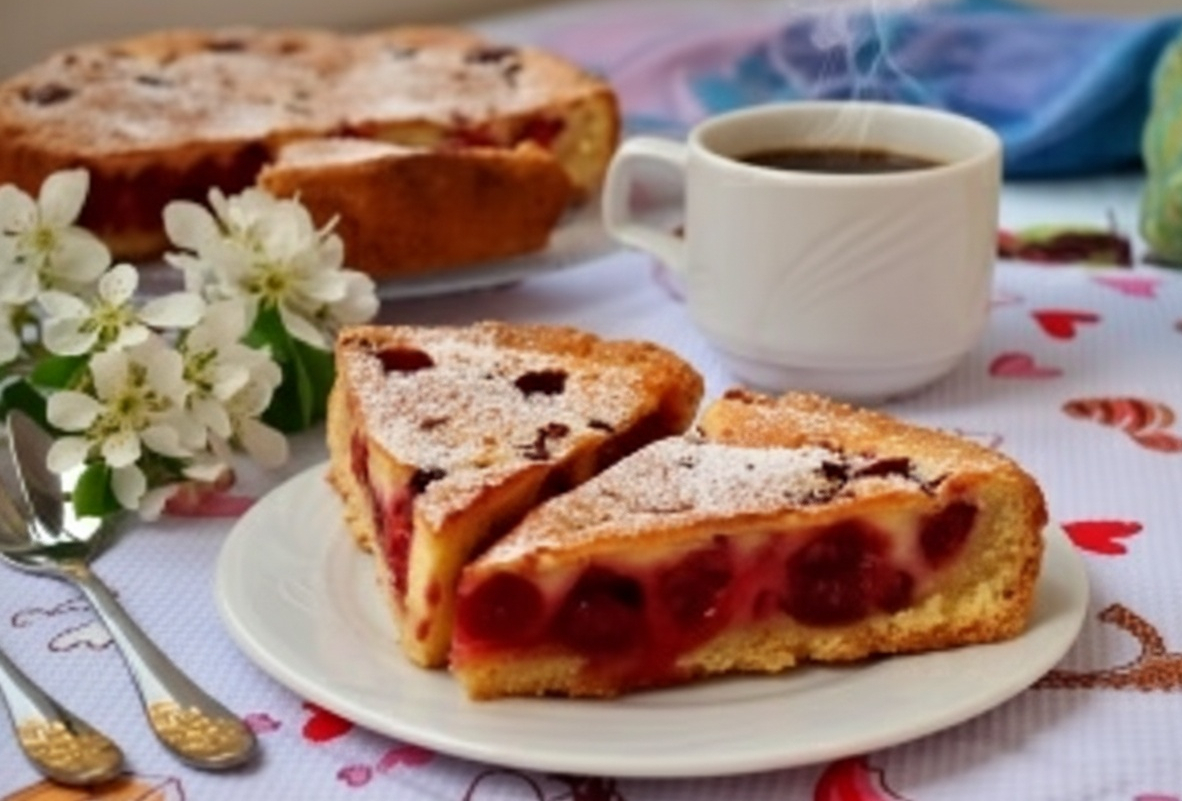 Этот пирог — настоящее кулинарное чудо. Внутри него скрывается нежная начинка из вишни, которая придает изделию насыщенный вкус и аромат. Тесто пирога хрустящее снаружи и мягкое внутри, а начинка добавляет свежести и пикантности. Пирог с вишней — идеальный выбор для тех, кто любит сочетать вкусное и полезное.