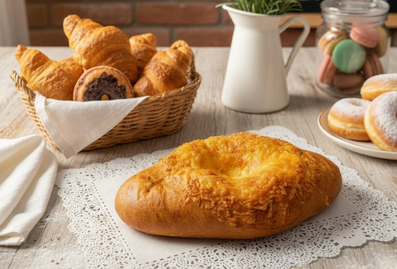 Прямо из духовки к вашему столу спешит ароматный сырный батон, готовый подарить удовольствие своим ярким вкусом и роскошным ароматом. Тонкая золотистая корочка защищает мягкую внутренность, пропитанную нежным вкусом расплавленного сыра. Батон сделан из высококачественного теста, приправленного мелко натёртым сыром, который придаёт ему изысканность и благородство.
