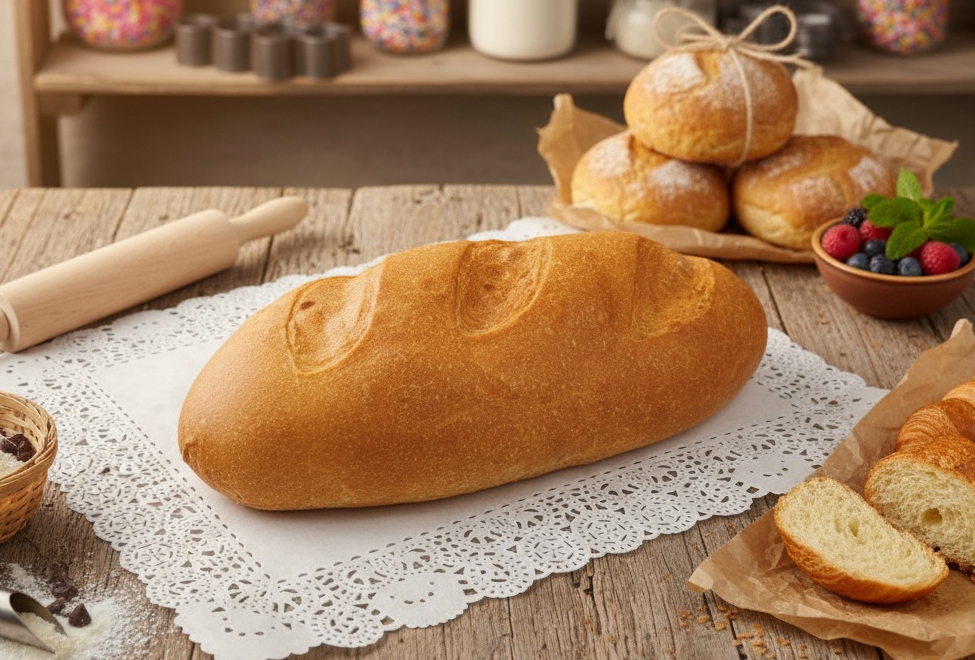 Настоящий подарок для ценителей искреннего вкуса и тепла домашнего очага. Этот батон словно перенёс вас обратно в детство, когда бабушка достаёт свежую горячую выпечку из печи. Рецепт, выдержанный годами, бережно хранится и передается поколениями.