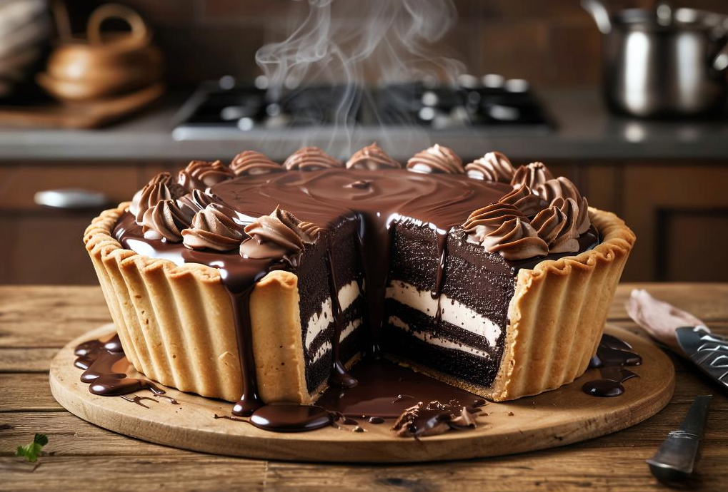 Этот пирог — настоящее кулинарное чудо. Внутри него скрывается нежная шоколадная начинка, которая придает изделию насыщенный вкус и аромат. Тесто пирога хрустящее снаружи и мягкое внутри, а начинка добавляет свежести и пикантности. Заливной шоколадный пирог — идеальный выбор для тех, кто любит сочетать вкусное и полезное.