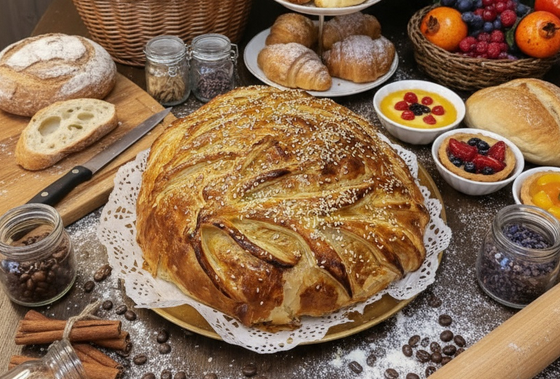 Курник — традиционный русский пирог, символизирующий праздник и особое торжество. Выпеченный из пышного дрожжевого теста, он славится многослойностью и богатством ингредиентов. Верхушка пирога украшена красивой плетеной сеточкой, а внутрь помещены тонкие слои песочного теста, чередующиеся с начинкой из куриного мяса, яиц, грибов и крупяных зерен. Края пирога соединяются особым способом, создавая эффект корзинки, защищающей начинку от высыхания. Блюдо традиционно подавали на свадьбах и праздниках, выражая уважение и радушие хозяев дома. Сегодня курник стал популярным праздничным угощением, любимым за его уникальную форму и сочетание несочетаемого.