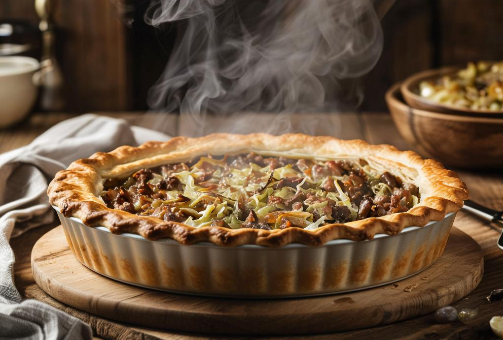 Этот пирог — настоящее кулинарное чудо. Внутри него скрывается нежная начинка из капусты и мяса, которая придает изделию насыщенный вкус и аромат. Тесто пирога хрустящее снаружи и мягкое внутри, а начинка добавляет свежести и пикантности. Пирог с капустой и мясом — идеальный выбор для тех, кто любит сочетать вкусное и полезное.