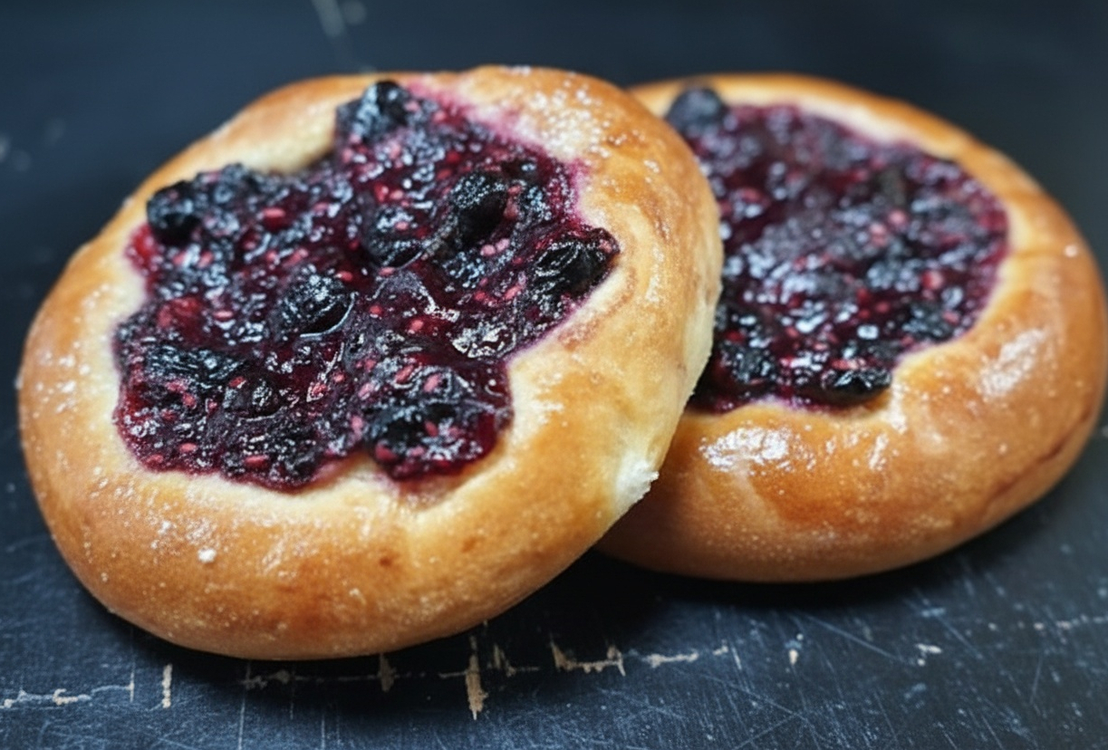 Ватрушка с черной смородиной — это традиционная русская выпечка, воплощающая уют и домашний комфорт. Круглая булочка из дрожжевого теста служит основанием для ароматной начинки из спелых ягод черной смородины. Кисловато-терпкий вкус ягод компенсирует сладость теста, создавая идеальное сочетание. Ватрушка печётся до золотистой корочки, выделяя чудесный аромат свежей выпечки. Она одинаково хороша как утренним завтраком с чашечкой чая, так и в качестве легкого перекуса в течение дня. Такая ватрушка согреет душу в холодный зимний вечер или напомнит о летних днях, наполненных ароматами сада и солнечного света.