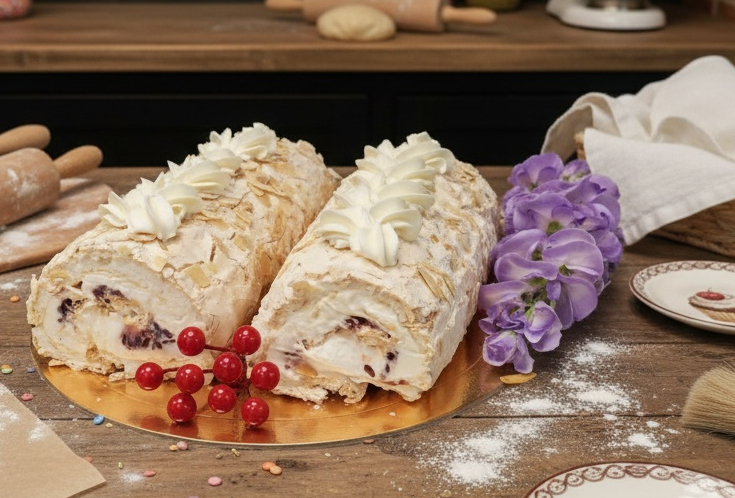 Маренговый рулет — это изящное кондитерское изделие, которое способно украсить любой стол и вызвать восхищение гостей. Основан он на классическом итальянском десерте меренга, состоящем исключительно из белков и сахара. Белковая масса взбивается до устойчивых пиков, потом аккуратно распределяется на противне и запекается до образования хрупкой корочки. Затем готовый бисквит промазывается густым кремом, чаще всего сливочным или масляным, и сворачивается в рулет. Внешне он выглядит стильно и эффектно, а вкус потрясающе нежный и сладкий. Рулет отлично хранится и перевозится, благодаря чему пользуется большой популярностью на праздниках и торжествах.