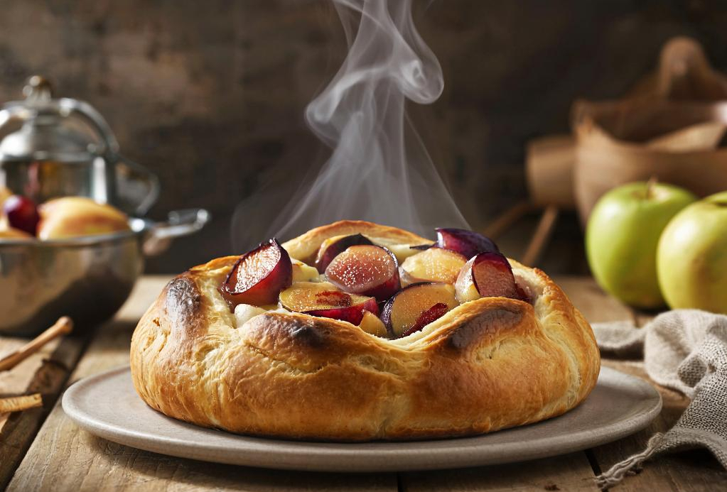 Погрузитесь в уютную атмосферу домашних традиций с нашей булочкой, наполненной сочными кусочками яблок и сладкими плодами сливы. Аромат свежей выпечки окутает вас теплом и комфортом, словно воспоминание о бабушкиных рецептах. Светлая золотистая корочка и воздушные слои теста сочетаются с натуральными ингредиентами, создавая яркий вкусовой букет. Наша булочка станет идеальным спутником для утреннего кофе или дневного отдыха с семьёй и друзьями.