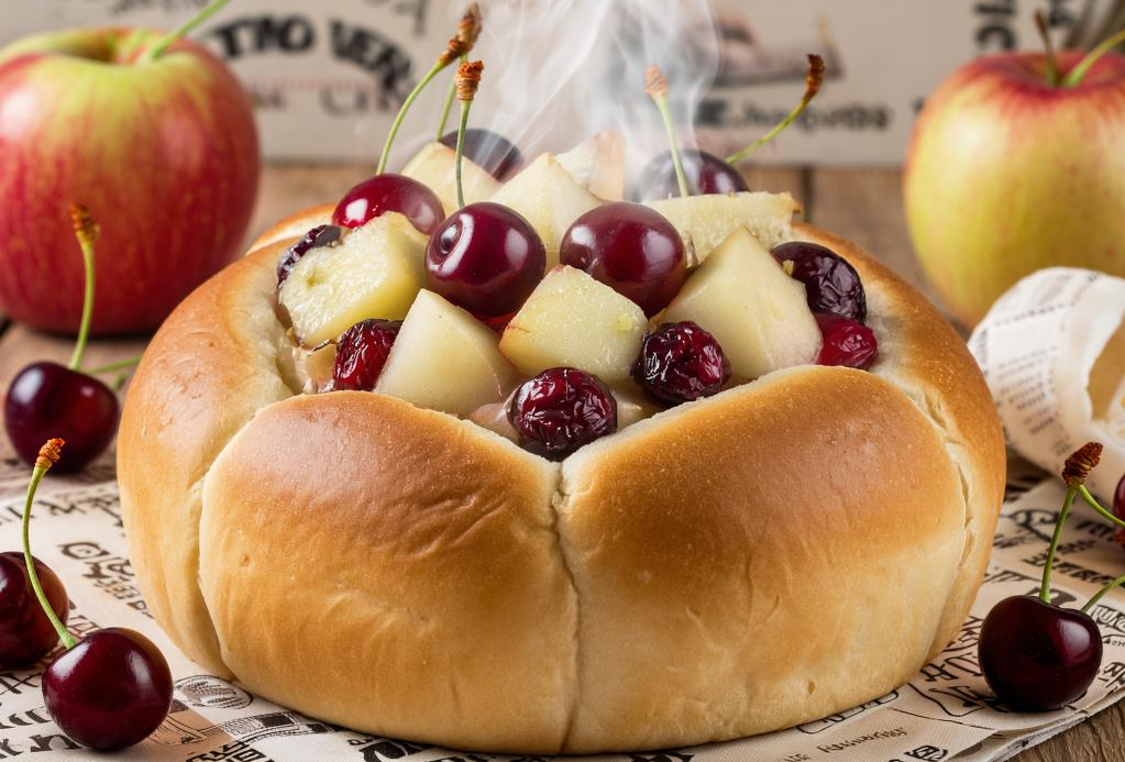 Представьте себе аромат свежей выпечки, смешанный с запахом спелых фруктов... Именно такую картину мы предлагаем вам увидеть и почувствовать, попробовав нашу булочку с яблоком и вишней. Испечённая с любовью и заботой, она отличается нежным тестом, обернутым вокруг сочных кусочков яблока и целой вишни. Обжаренное яблоко добавляет блюду необходимую кислоту, а вишня приносит свою терпкость и свежий аромат. Поверхность булочки гладкая и блестящая, покрытая легкой золотистой корочкой, подчеркивающей высокое качество изготовления.